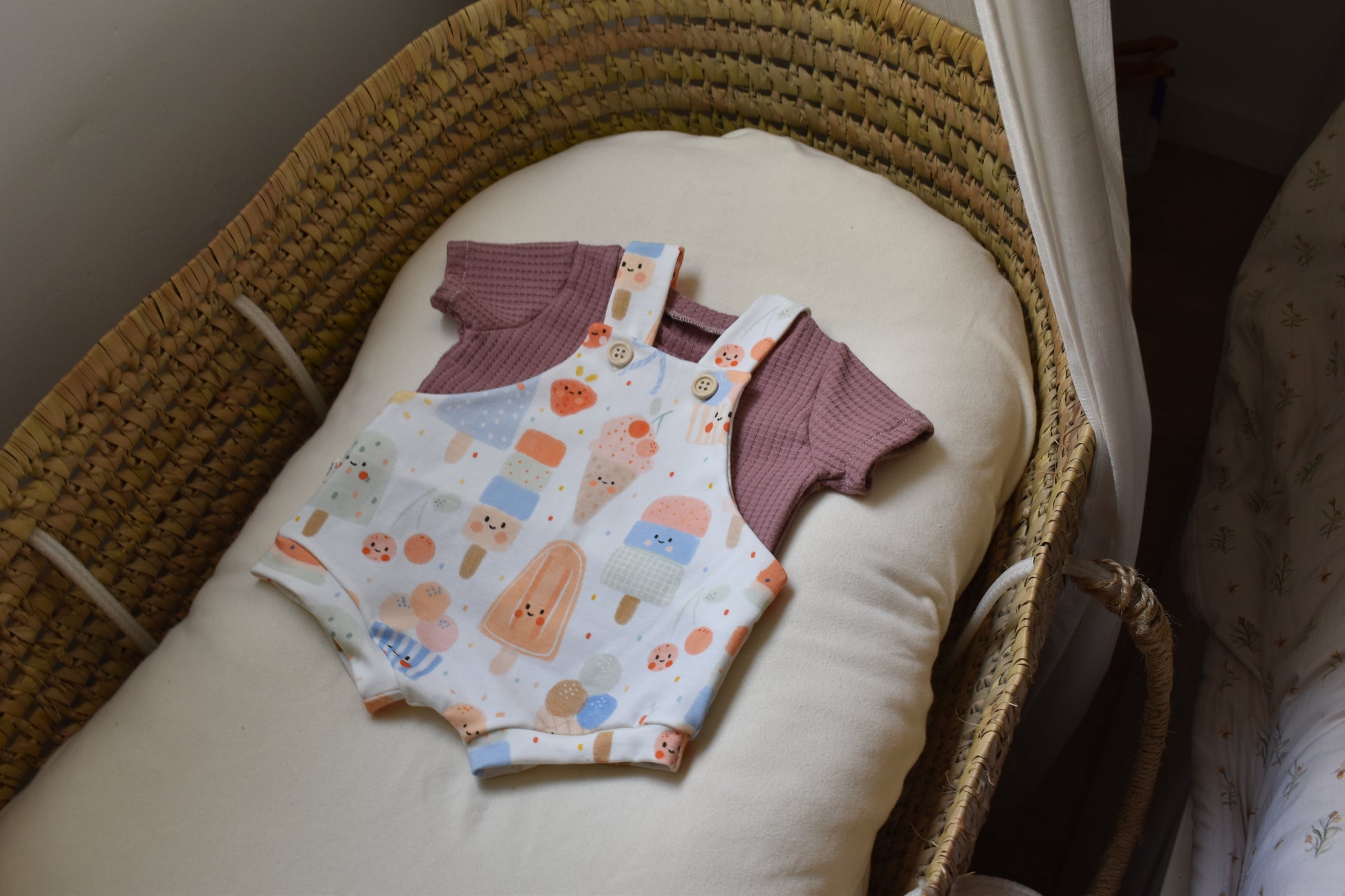 Cool short overalls for the summer months with wooden button detailing