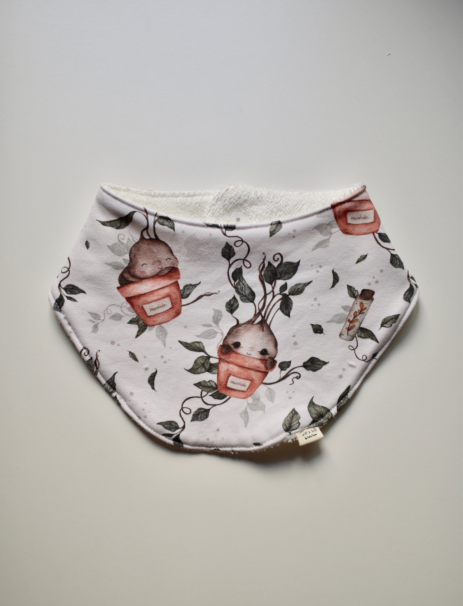 Babero estilo bandana con cierre de snap. Super práctico y cómodo para mantener la ropita libre de babas y restos de comida