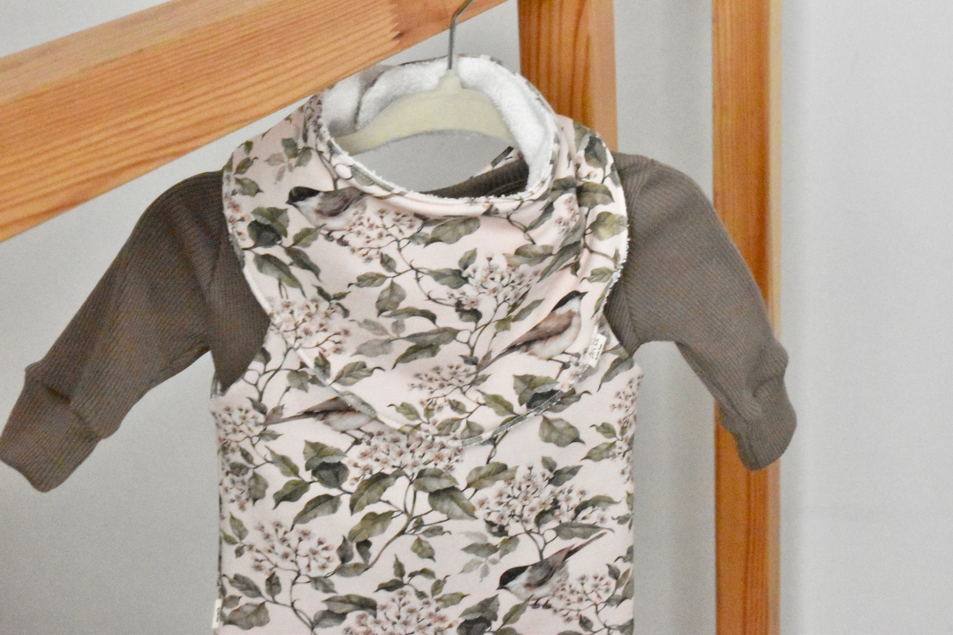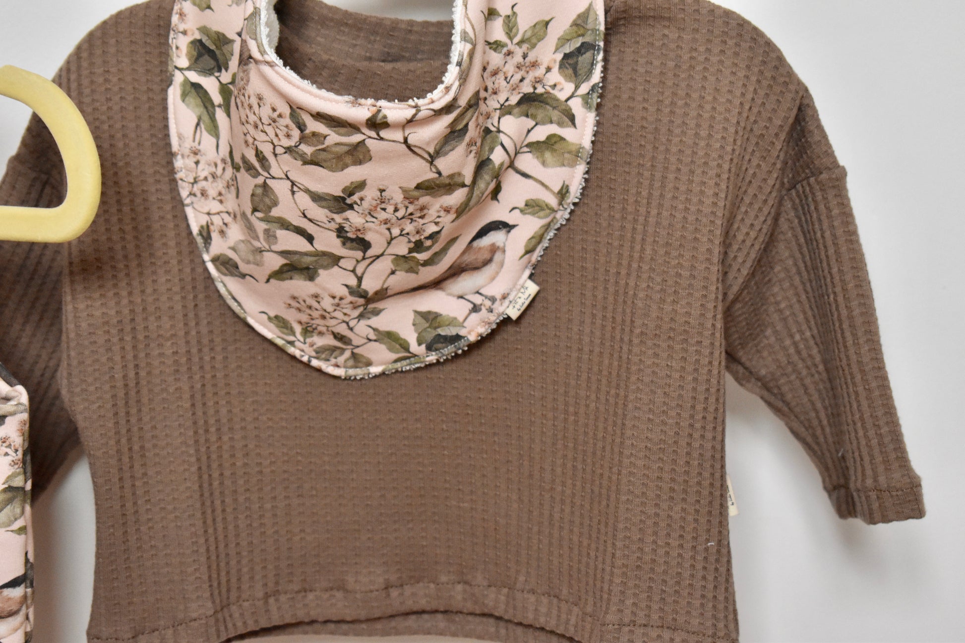 Babero estilo bandana con cierre de snap. Super práctico y cómodo para mantener la ropita libre de babas y restos de comida