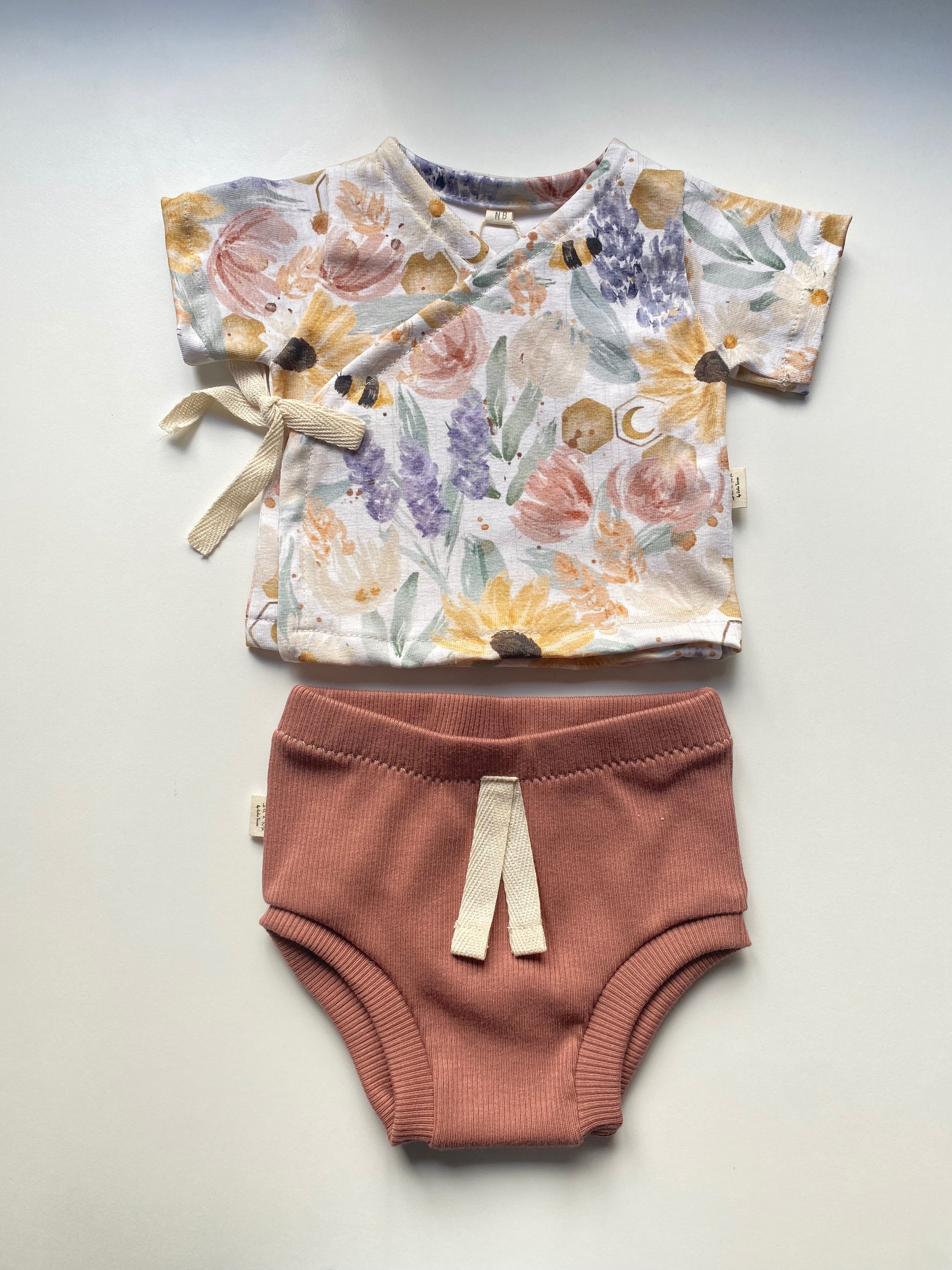 Conjunto newborn veraniego con manga corta y parte de abajo cubre pañal bien fresquito. Este conjunto es perfecto como primera puesta