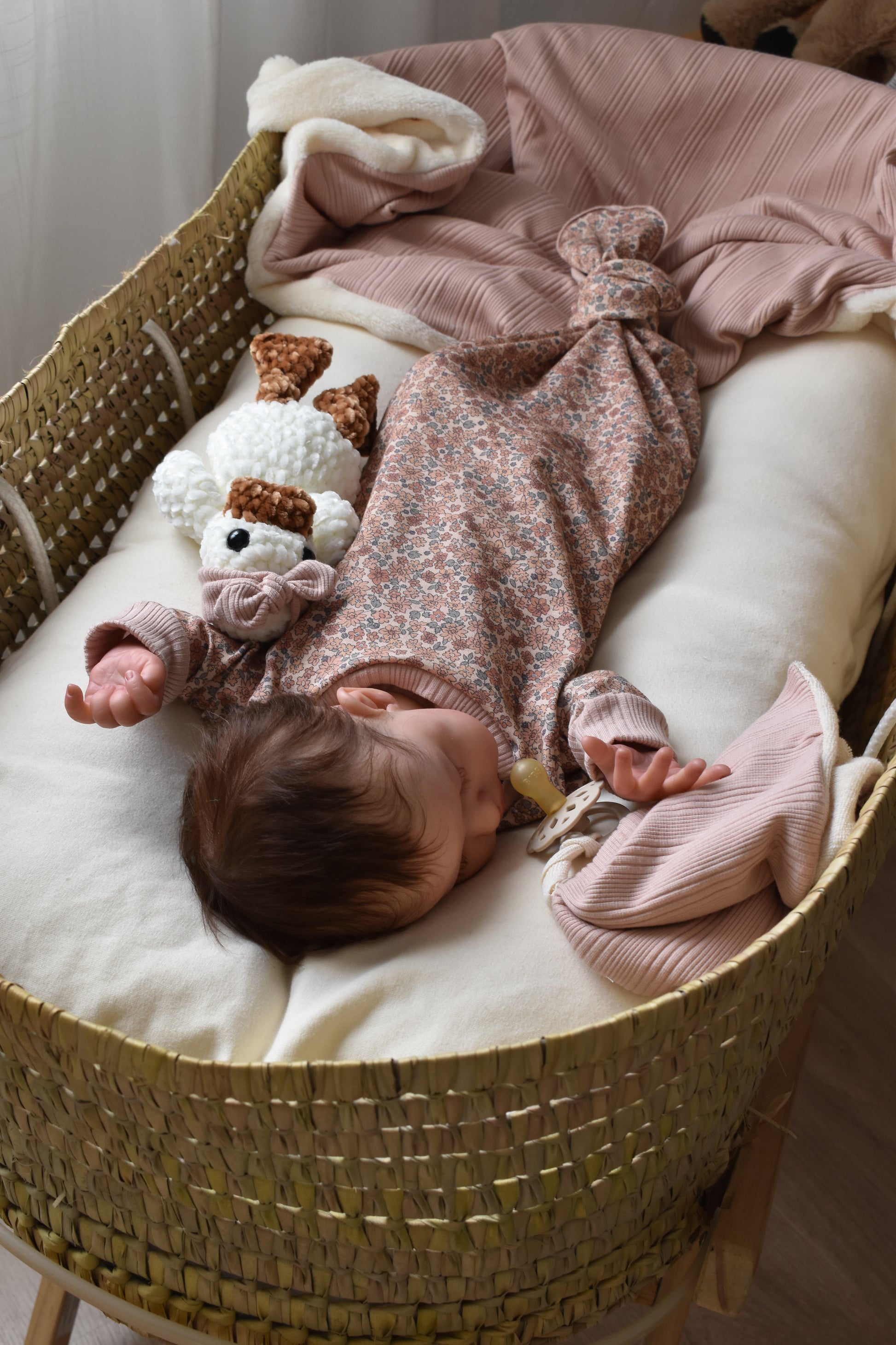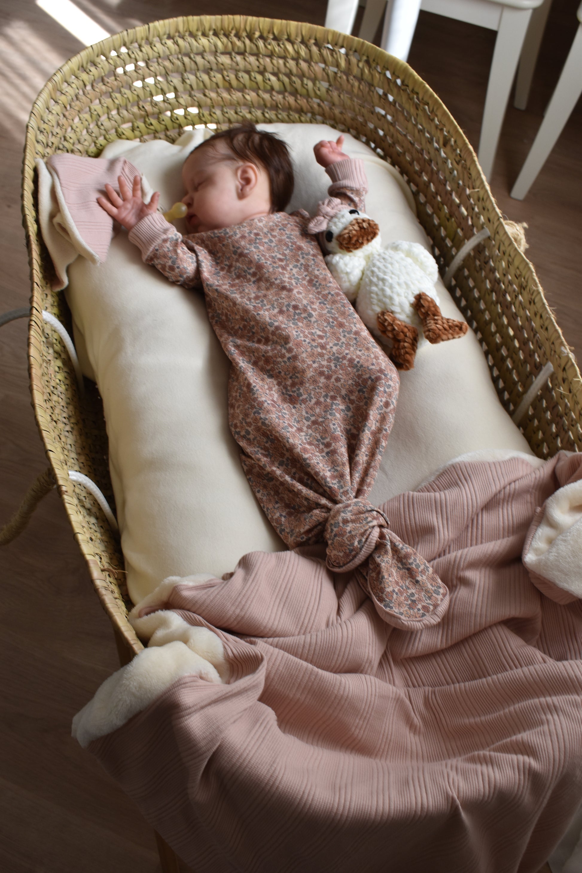 Perfecto para las primeras semanas del bebe, sencillo de poner y facilita mucho el cambio de pañal ya que solo tienes que deshacer el nudo y subirlo sin tenerte que "pelear" con botones o corchetes. El bebé estará cómodo y calentito con total libertad de movimiento en sus piernas. Cuando lo pruebes, no querrás otra prenda.
