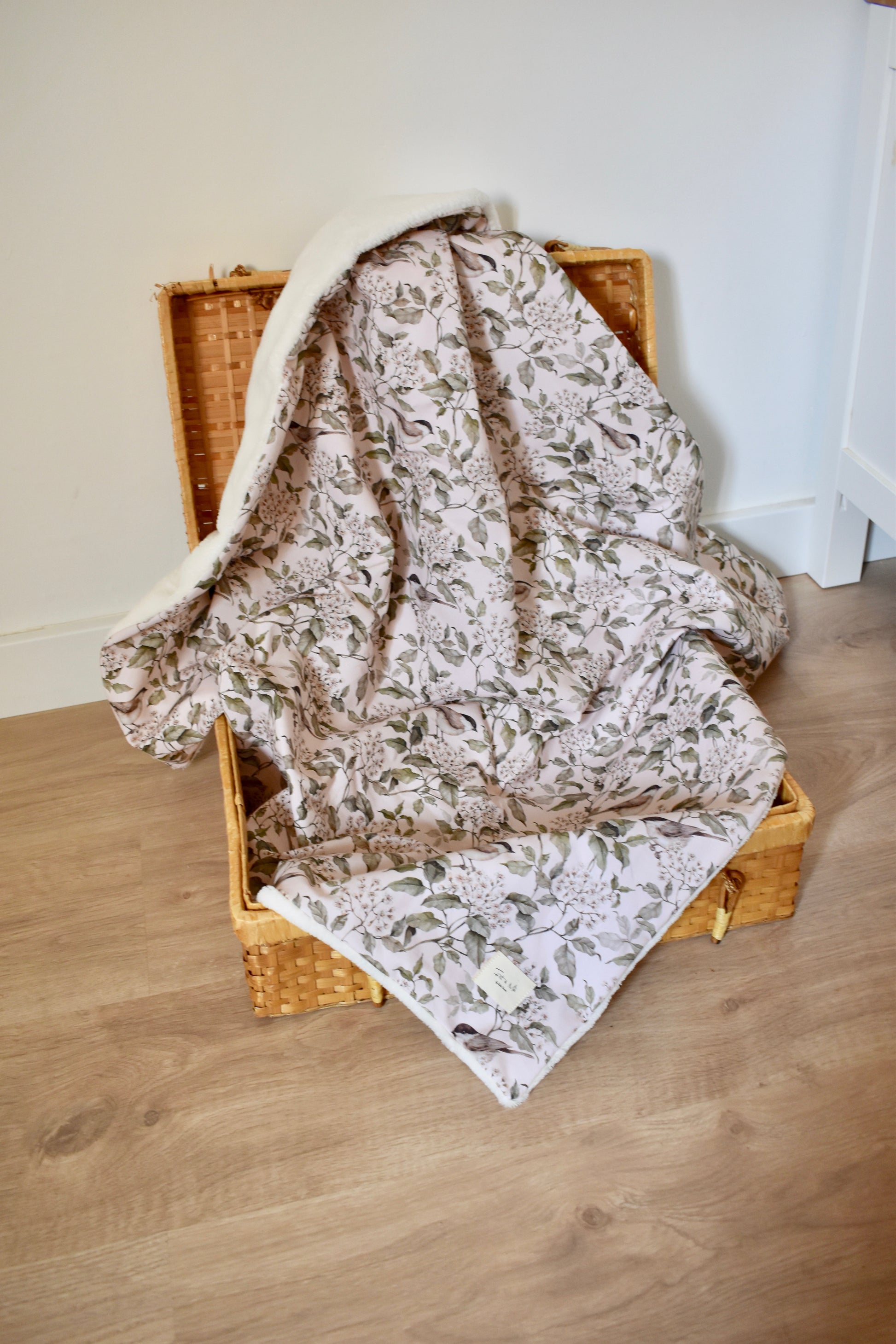 Manta con reverso de coralina, super suave y calentita, perfecta para los meses mas fríos. Si prefieres el reverso de rizo para los meses de verano déjame una nota en los comentarios del pedido