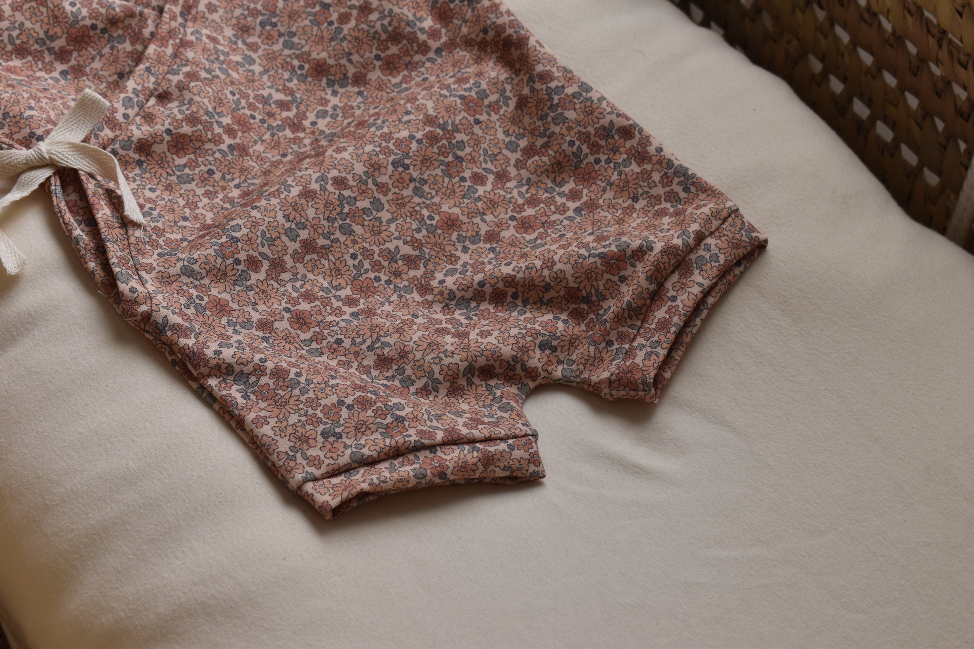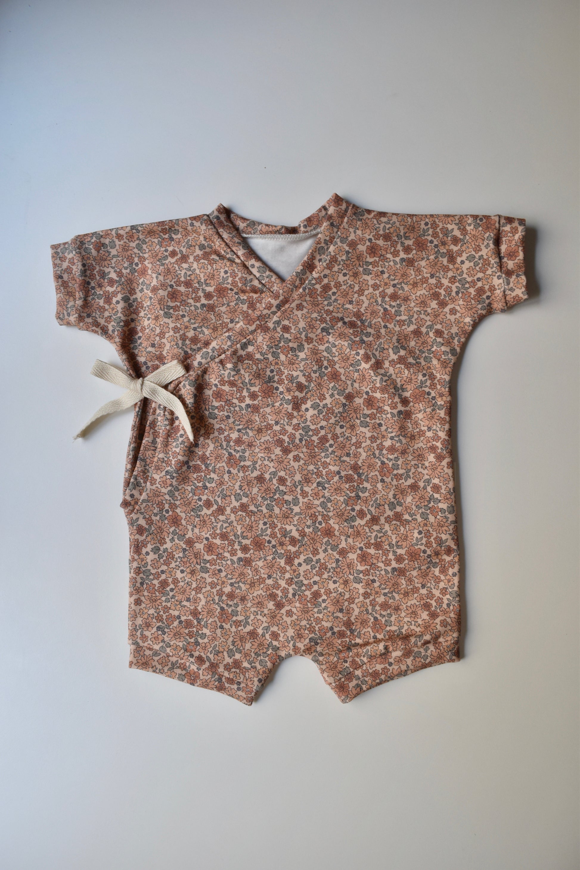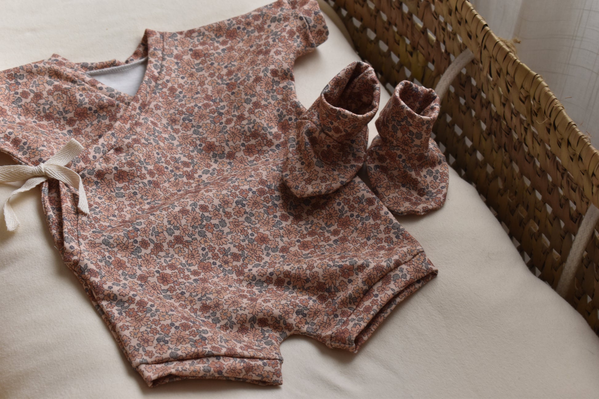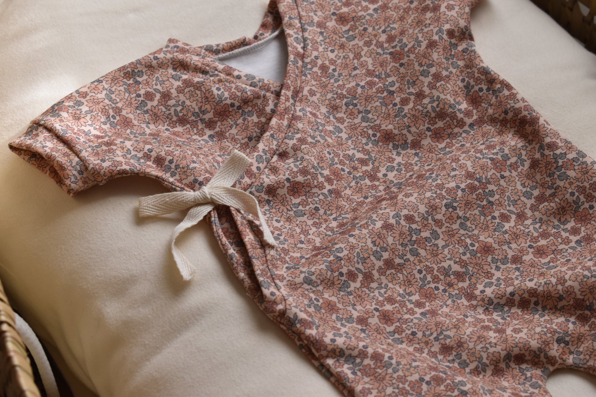 Pelele cruzado anudado con una cinta de algodón. Perfecto para los primeros meses del bebé