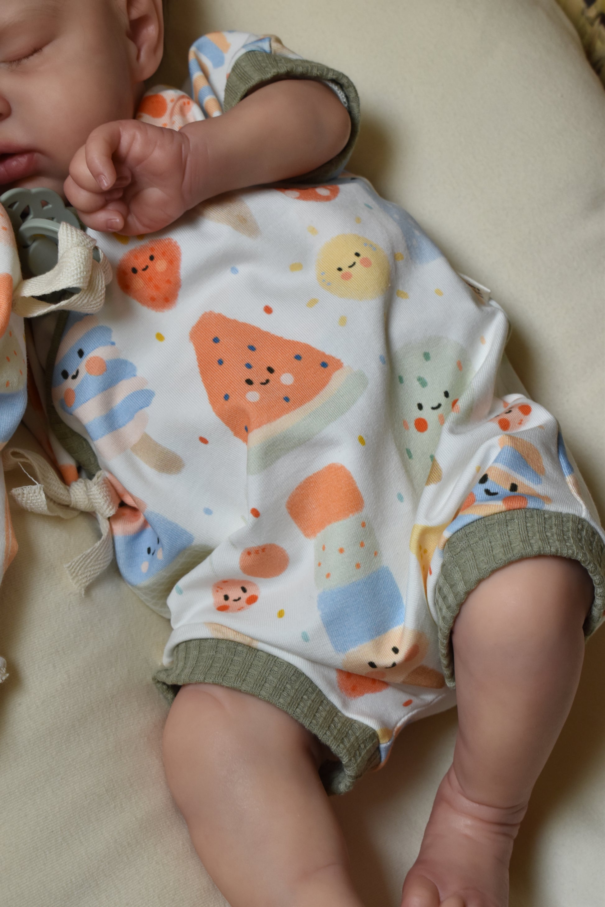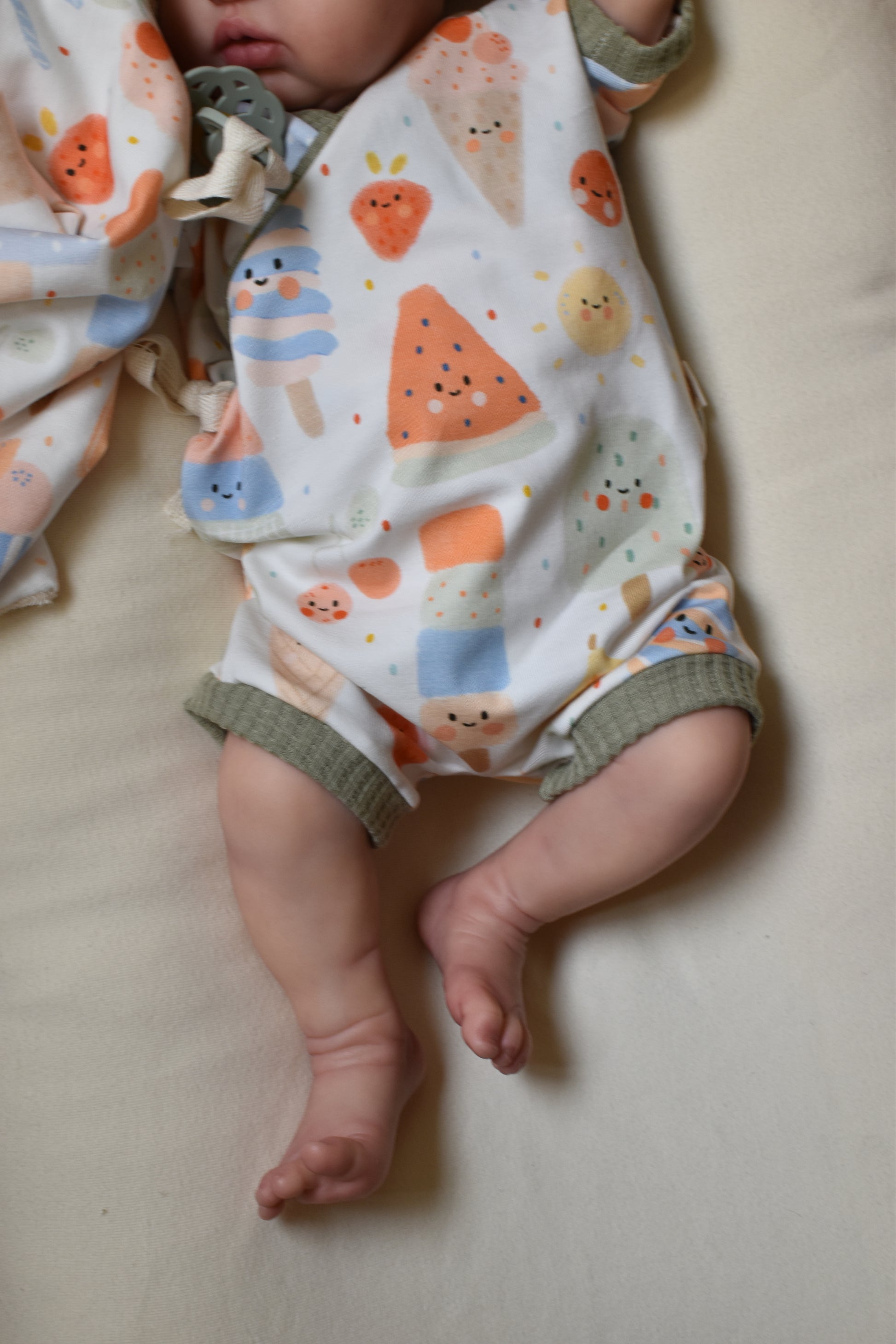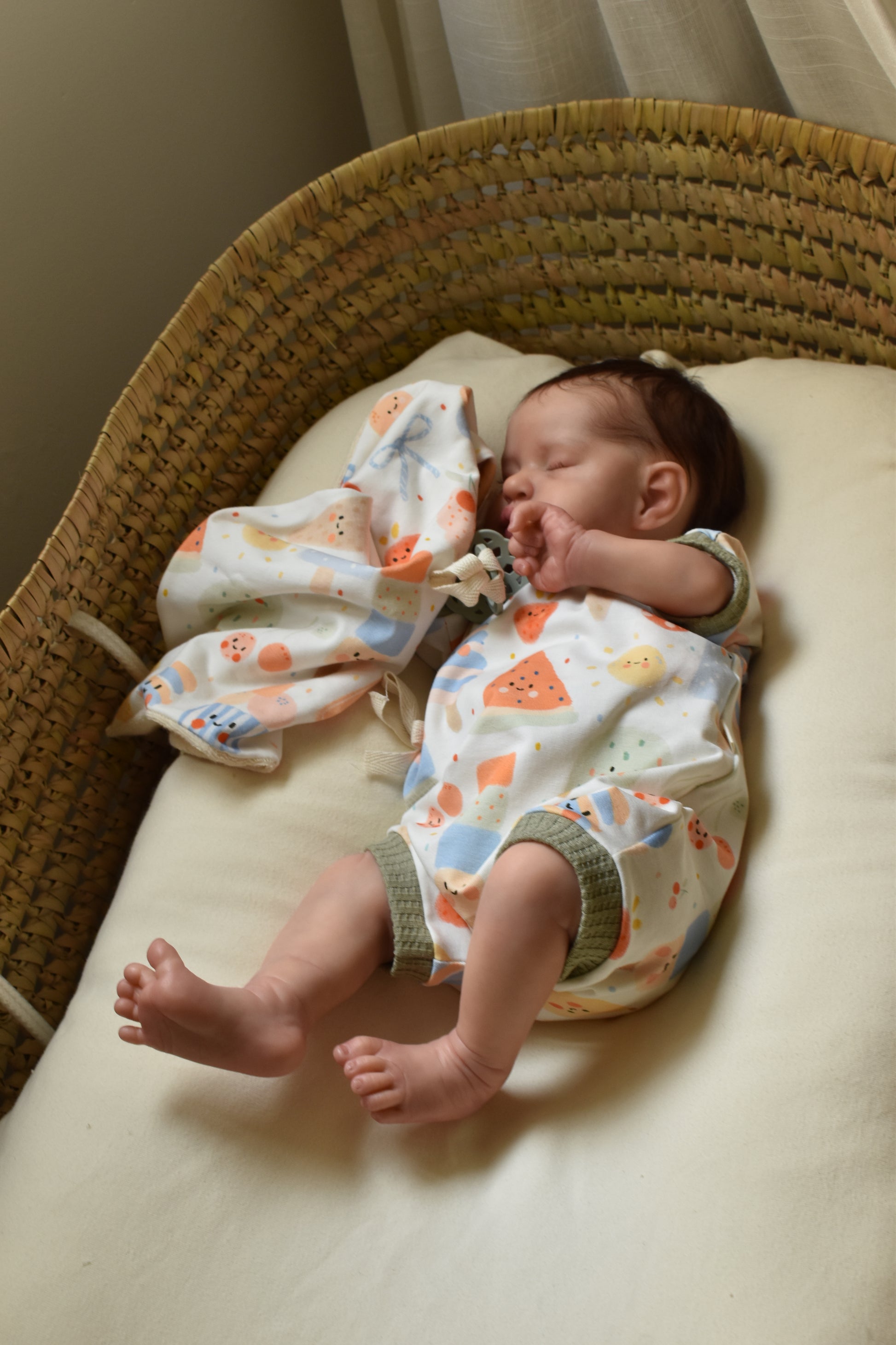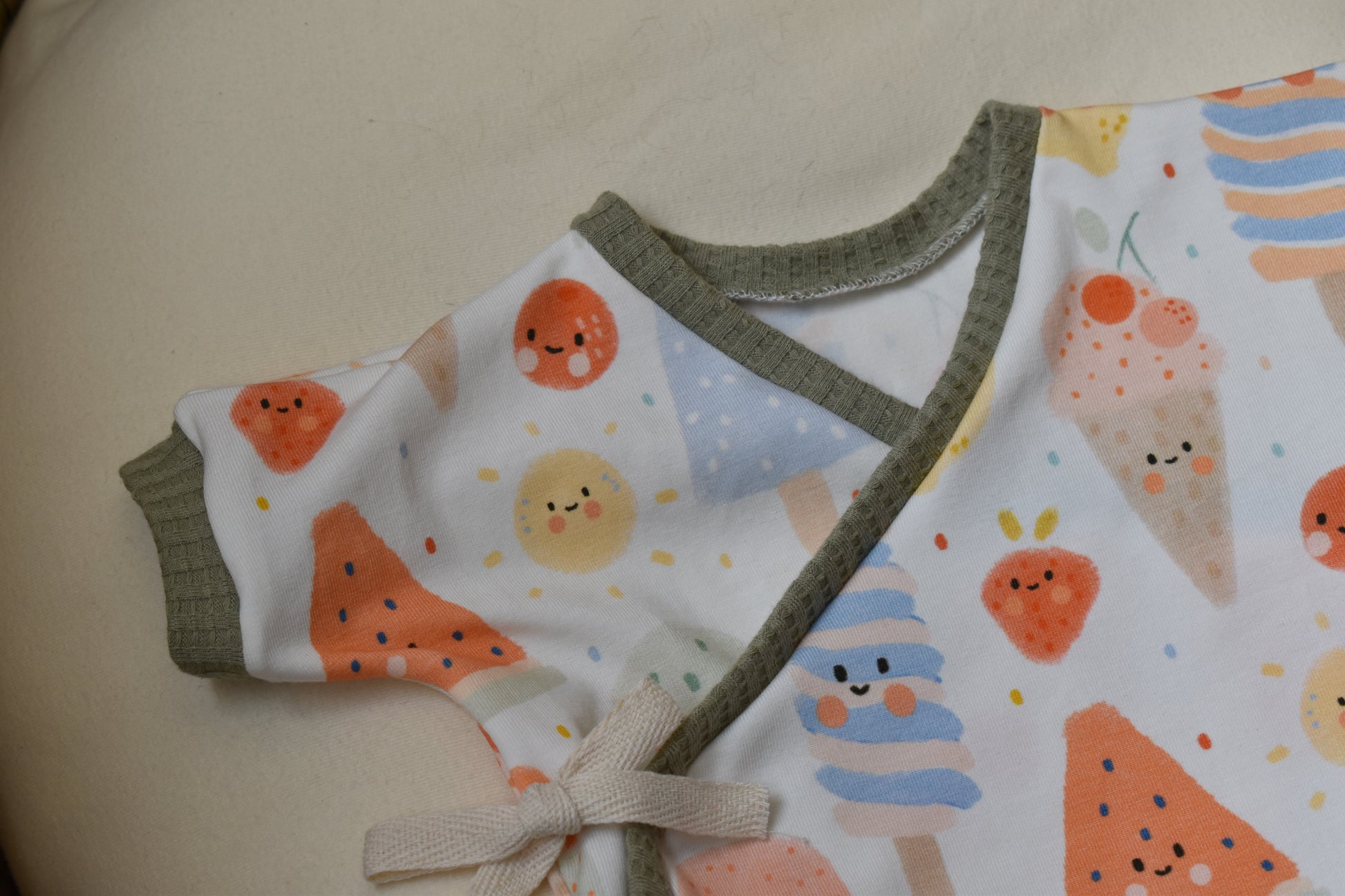 Pelele cruzado anudado con una cinta de algodón. Perfecto para los primeros meses del bebé